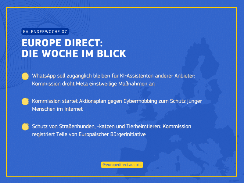 Was ist in der vergangenen Woche in der EU passiert? Welche EU-Themen sind für Österreich relevant? Was wird derzeit eigentlich diskutiert? Diese Fragen beantworten wir Ihnen in unserem Wochenüberblick. In unserer Serie erfahren Sie einmal pro Woche, was sich in der EU tut.