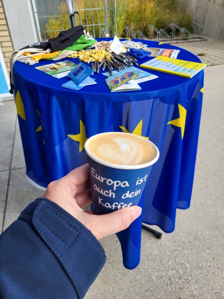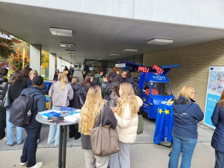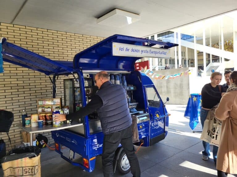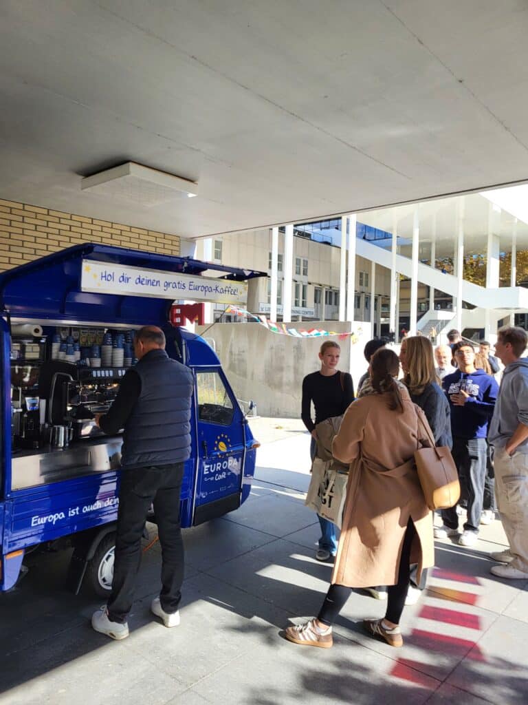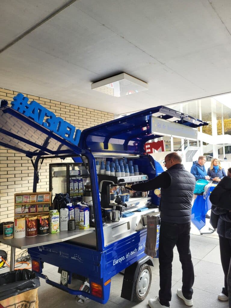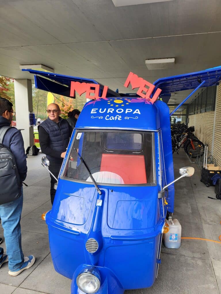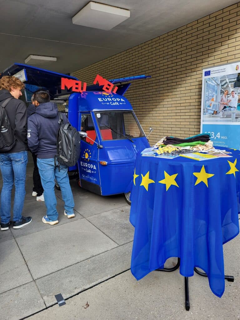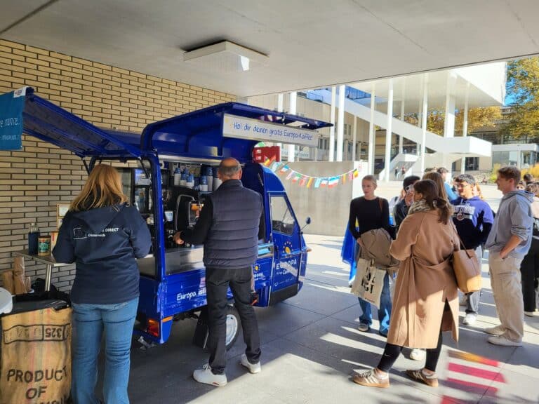 Am 16. Oktober 2025 machte die beliebte Europa-Café-Ape anlässlich der ErasmusDays an der Johannes Kepler Universität in Linz halt.  Bei einem frisch zubereiteten und  ausgezeichneten Kaffee kamen Studierende und Professoren zusammen und unterhielten sich in entspannter Atmosphäre über die verschiedenen Möglichkeiten für Auslandsaufenthalte im Rahmen von Erasmus+ und über diverse aktuelle Themen. EUROPE DIRECT Oberösterreich war mit Informationsbroschüren vertreten und stand für Fragen zur Europäischen Union zur Verfügung.