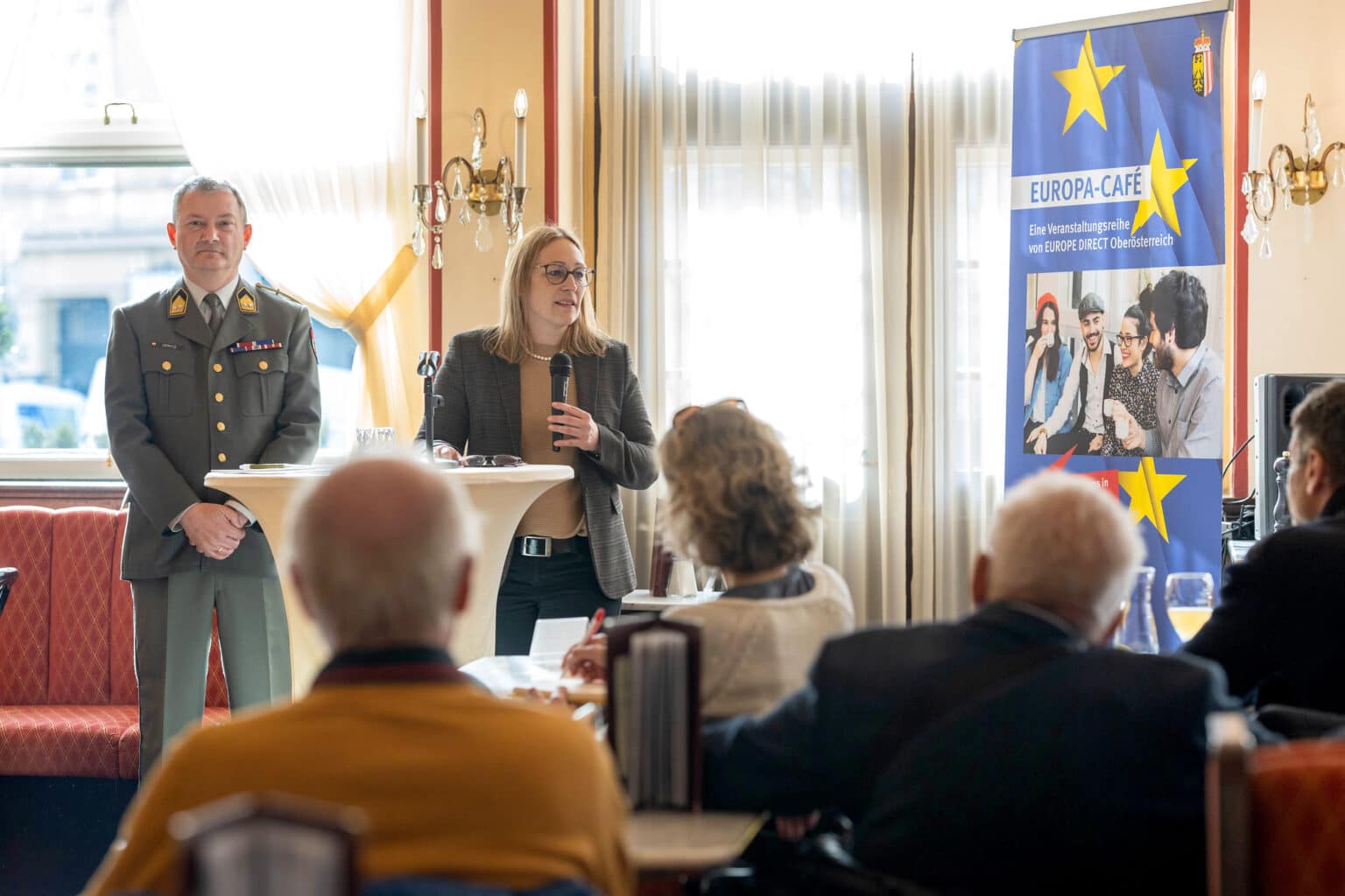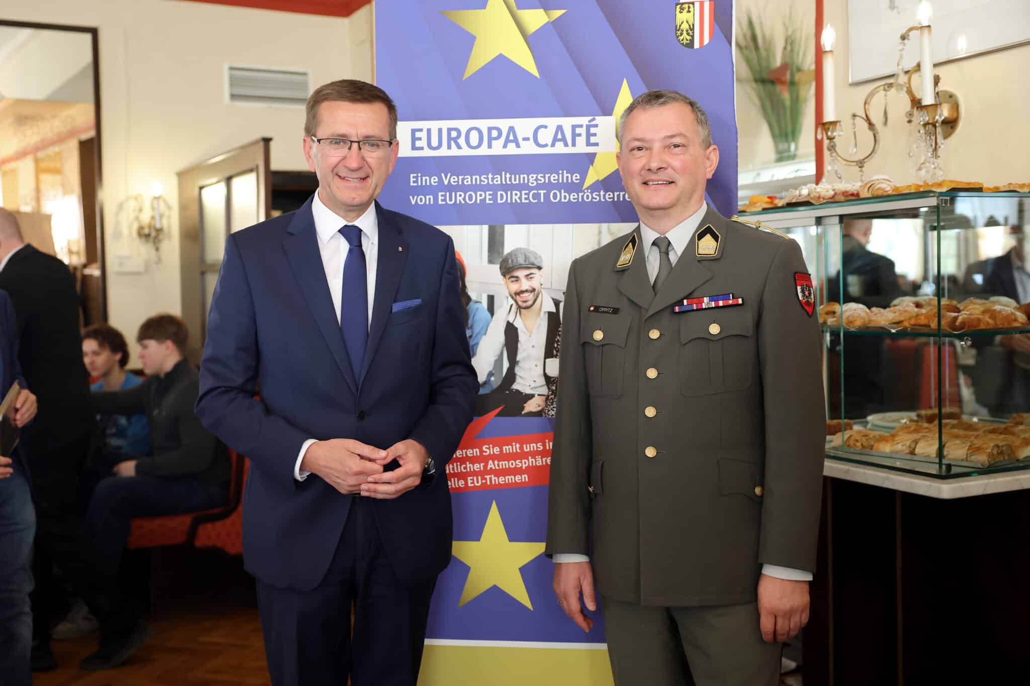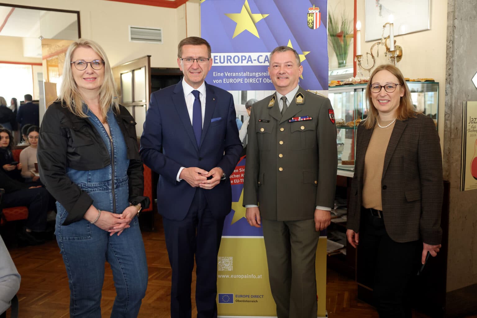 Am 10. März 2026 fand im Café Traxlmayr in Linz ein Europacafé statt, das sich dem hochaktuellen Thema Sicherheit in Österreich und Europa widmete. Zahlreiche interessierte Gäste sowie Schülerinnen und Schüler des BRG Hamerlingstraße nahmen an der Veranstaltung teil.