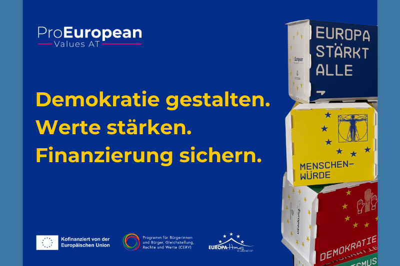 Die Initiative ProEuropeanValuesAT unterstützt auch dieses Jahr im Zeitraum von April bis Dezember 2026 wirksame Aktivitäten zur Förderung von demokratischer Teilhabe, Rechtsstaatlichkeit und Stärkung europäischer Werte.