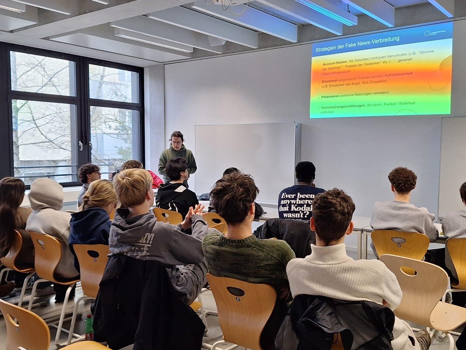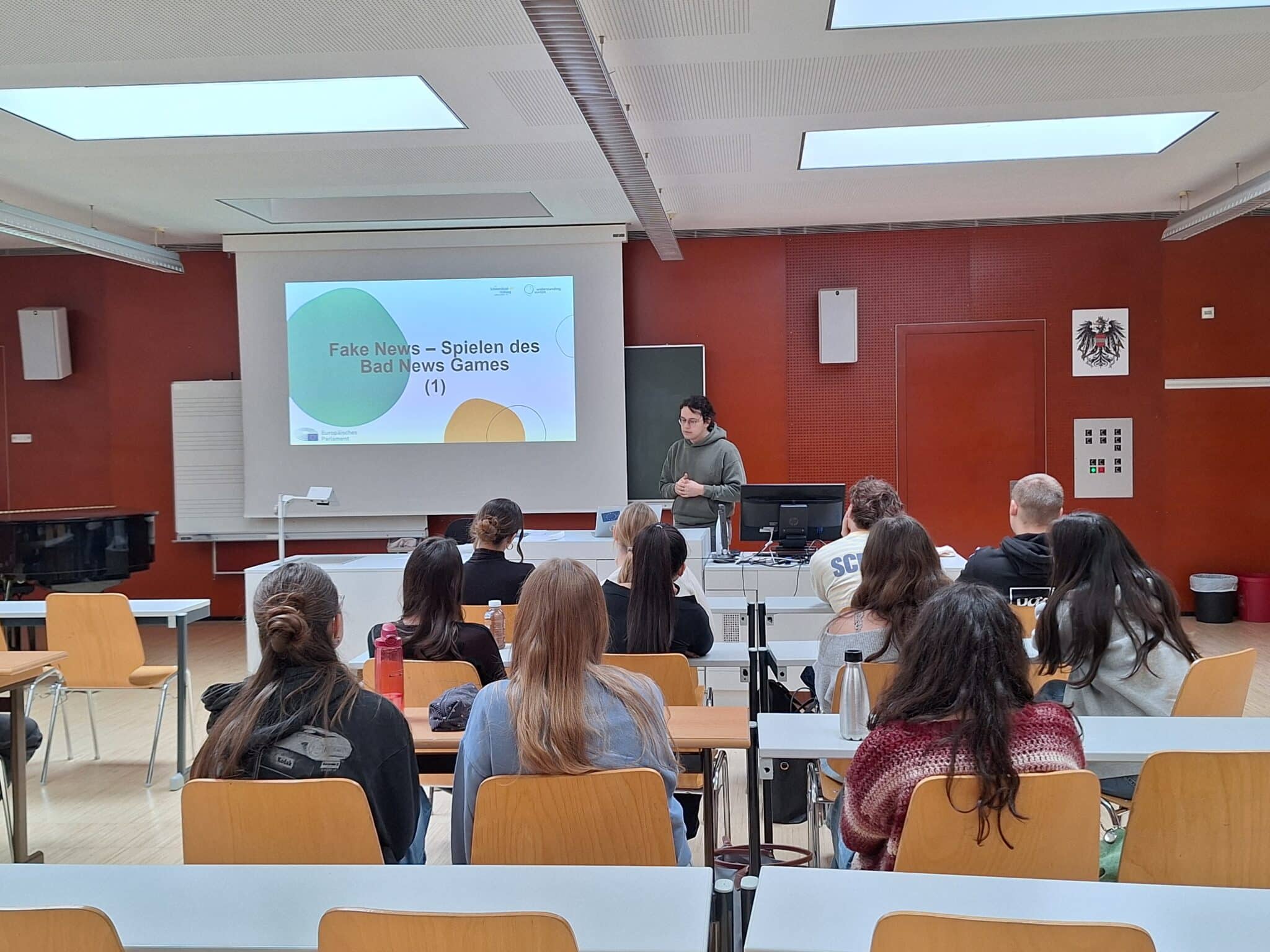 Zwei Tage lang tourte ein Referent von understanding europe mit dem Bad News Game durch Vorarlberg: Am 18.2. besuchte er zwei Klassen an den EP-Botschafterschulen HAK Feldkirch und Gymnasium Feldkirch und zeigte den Schülerinnen und Schülern anhand des Spiels und mithilfe von Zusatzinformationen, welche Methoden bei Fake News erfolgreich sind und wie diese funktionieren. Am 19.2. standen zwei Fortbildungsveranstaltungen gemeinsam mit der koje für Jugendarbeiter/innen und gemeinsam mit der PHV für Lehrkräfte auf dem Programm.